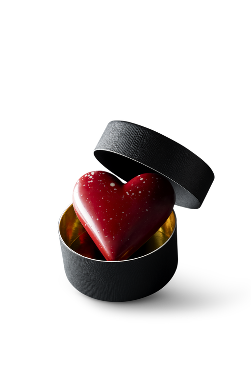 Een groot hart (15 cm) van volle romige melkchocolade, in warm rood gekleurd met een mooie bladgoud afwerking verpakt in een prachtige geschenkverp...