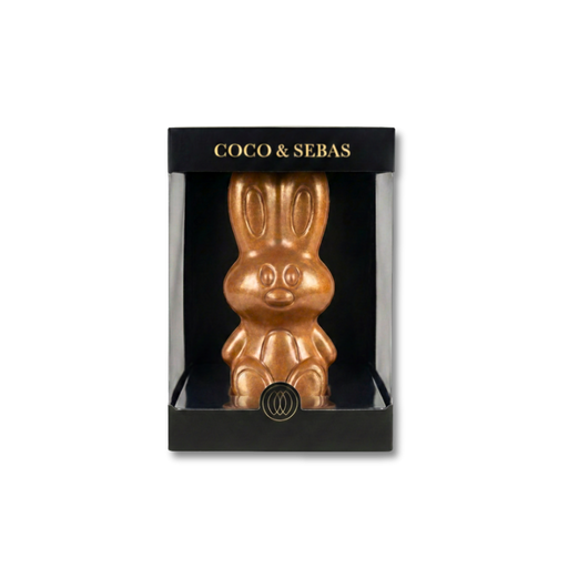 Vier het voorjaar met een iconisch symbool van Pasen, uitgevoerd in de kenmerkende luxe stijl van Coco & Sebas. Dit Chocolade Paashaasje Karame...